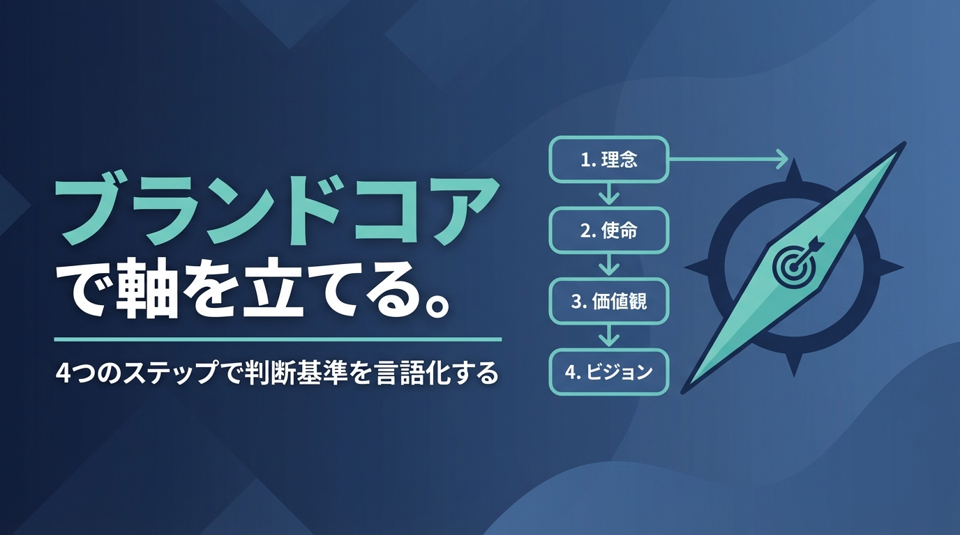 これらはすべて「判断基準の不在」から来るものです。V/M/Vが立派に整備されていても、それが「組織内部の指針」に止まっている限り、顧客接点での判断軸には機能しにくい。コアを定義することで、ようやくこの問題が解決に向かいます。