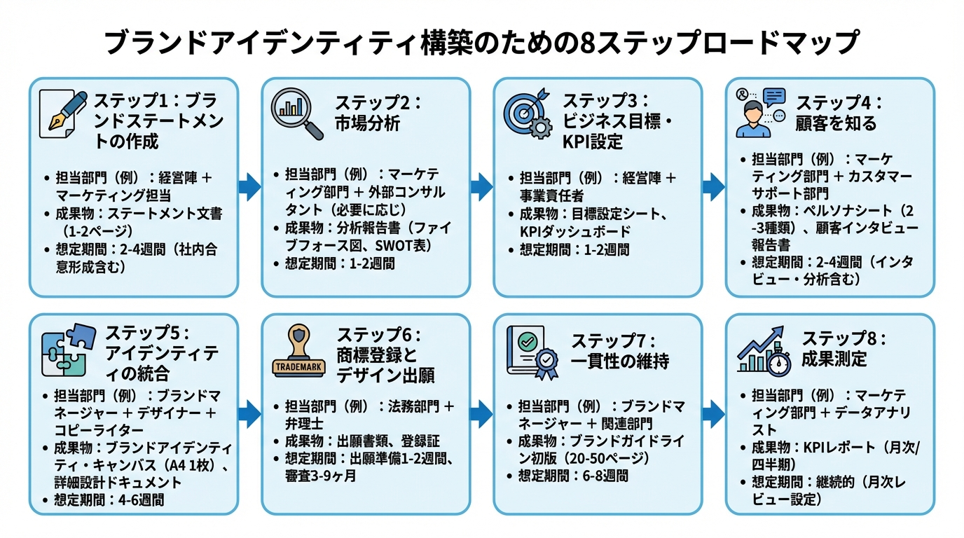 ブランドアイデンティティ完全ガイド|3軸7要素×8ステップで中小も成功!失敗事例と対策