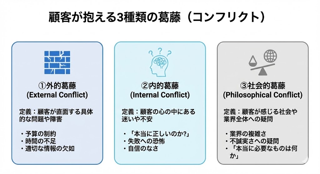 3. 葛藤(コンフリクト)の設定: 外的・内的・社会的な葛藤を描く