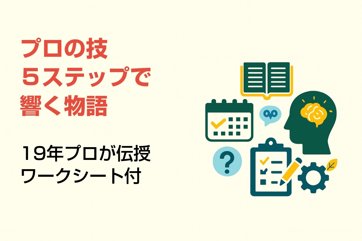 さらに、各ステップで使えるワークシートやチェックリストもご用意しました。記事を読み終える頃には、「自社のストーリー骨格」を書き出せる状態になっているはずです。
