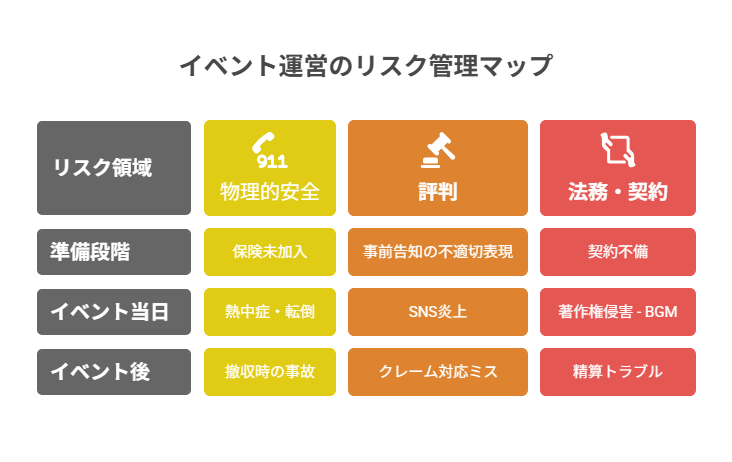 イベントには、常にリスクがあります。事前の準備と当日の対応で、トラブルを最小化しましょう。