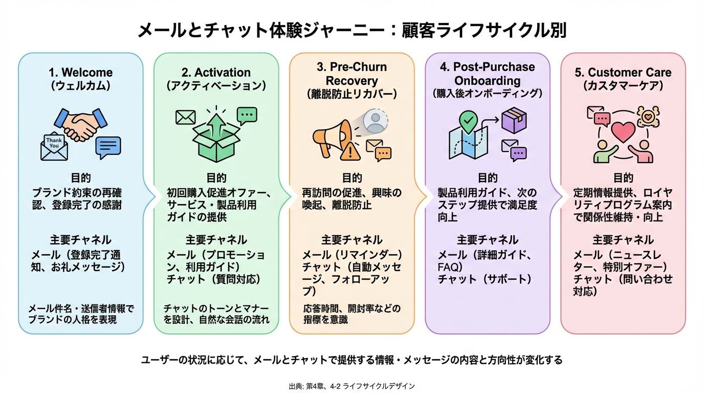 - メール・チャット体験:ライフサイクル設計とSLA基準