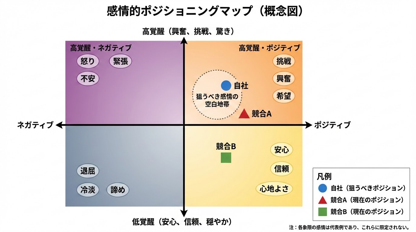 顧客が本当に求めている感情的価値を深掘りします。 - Step3:感情的ポジショニングを設計