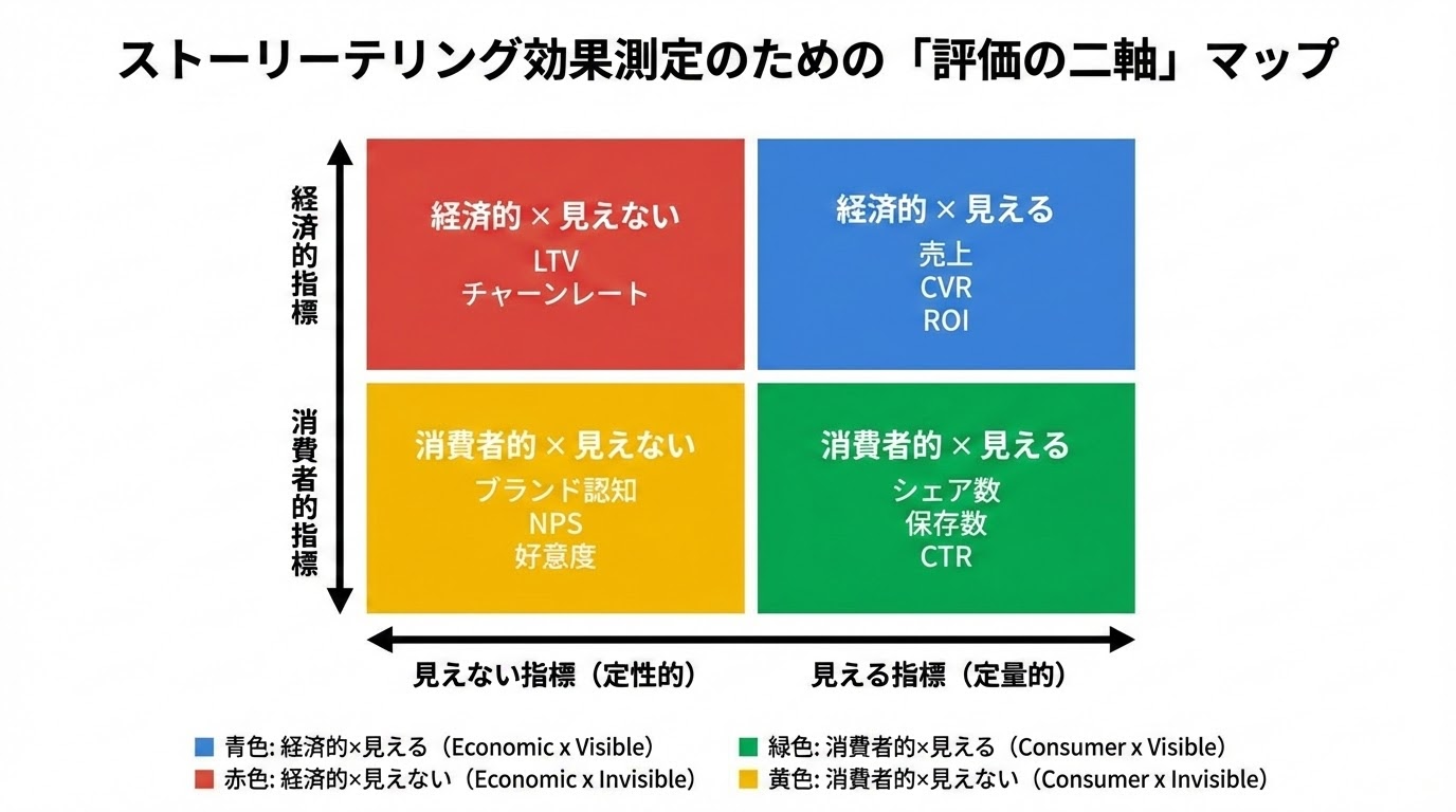- ブランドストーリーの効果測定については、より詳細な手法は、ブランドストーリー、効果不明のままでいい?予算承認率65%UP!35年のプロが教える数値化戦略で解説しています。