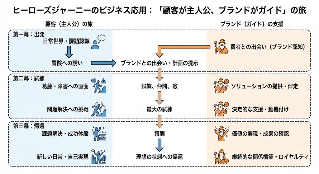 - ビジネス応用: 「顧客が主人公/ブランドがガイド」という実務設計への橋渡し