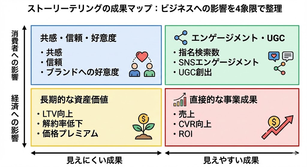 これらのデータを活用することで、経営層やステークホルダーに対して、ストーリーテリングへの投資理由を論理的に説明することができます。